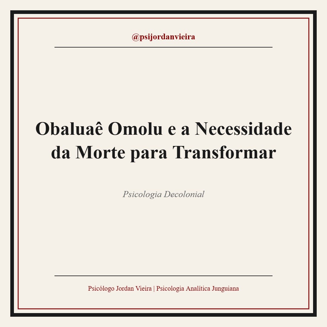 Na leitura que fazemos no Encruzilhada: nosso núcleo de estudos junguianos com perspectiva decolonial.Obaluaê/Omolu funciona como uma imagem arquetípica que nos ensina algo fundamental: não há transformação sem morte. Não há nascimento sem o fim de algo anterior.